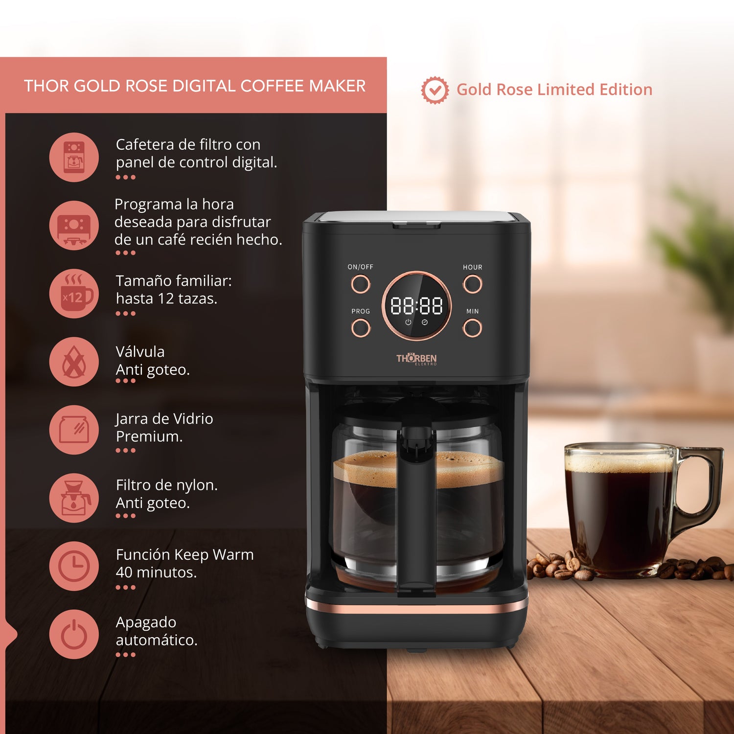 Cafetera 12 tazas Digital Thor Gold Rose Coffee Maker - Negro está agotado y se enviará tan pronto como vuelva a estar disponible.