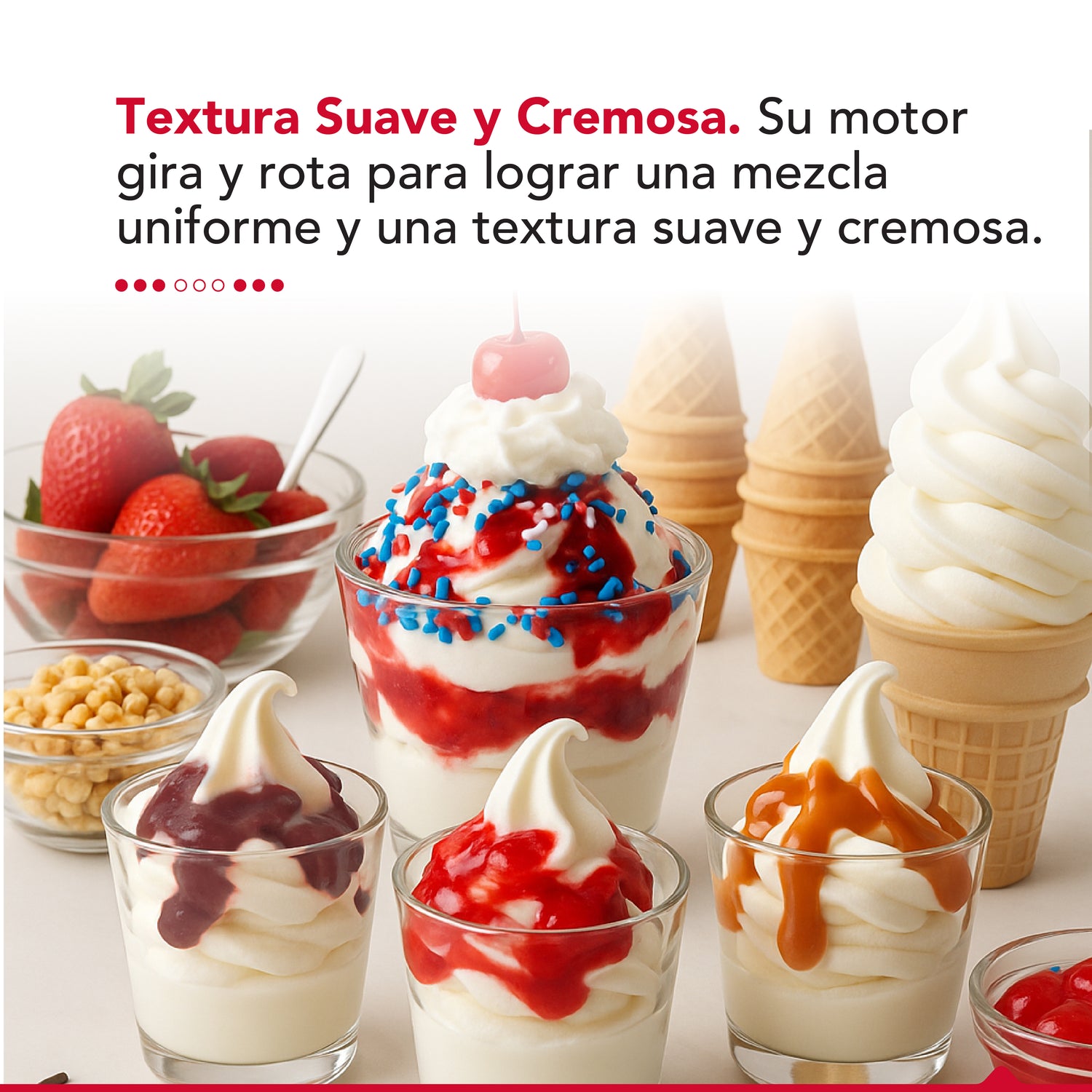 Con la THOR SUNDAE MAKER hacer tu propio helado suave nunca fue tan fácil. Solo necesitas congelar el bowl durante la noche, preparar tu mezcla favorita y dejar que la máquina haga su magia. Puedes usar los ingredientes que prefieras sin lactosa, con azúcar o sin gluten y disfrutar de infinitas combinaciones. Simplemente vierte la mezcla, gira el dial y en unos 20 minutos tendrás un delicioso helado listo para servir. Además, esta máquina no solo prepara helado soft, también es perfecta para crear sorbetes, yogures helados, postres y mucho más. ¡Disfruta de una experiencia dulce y casera en casa con THOR SUNDAE SOFT ICE CREAM MAKER!