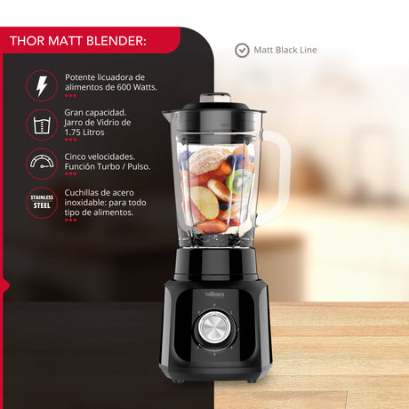 Licuadora 5V 1,75L 600W Thor Matt Black Blender
